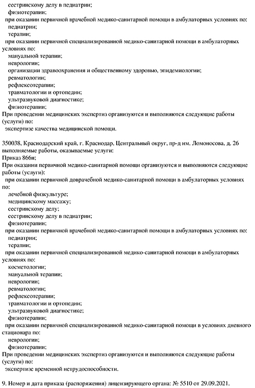 Проводит диагностику и лечение заболеваний сердечно-сосудистой системы, дыхательной системы, желудочно-кишечного тракта, инфекционных заболеваний, инфекционных болезней детского возраста, мочевыделительной системы. Выполняет сканирование органов брюшной полости, почек, щитовидной железы, лимфоузлов, мягких тканей, молочной железы, органов малого таза у мужчин и женщин, трансабдоминальное сканирование предстательной железы, мочевого пузыря.