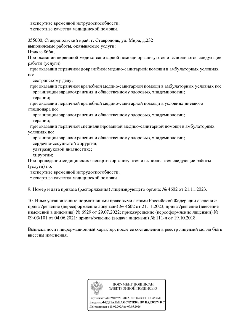 Проводит лечение варикоза без операции (склеротерапия). Выполняет комплексное лечение и профилактику варикозной болезни, тромбофлебита, болей в коленных суставах на фоне варикозной болезни. Хирургическое лечение варикозной болезни (флебэктомия, минифлебэктомия).